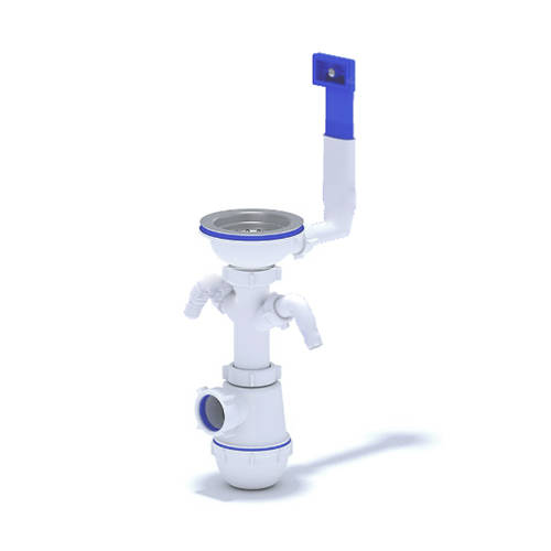 Сифон для кухонных моек с диаметром сливного отверстия 50мм, бутылочного типа с увеличенным корпусом. С разборным выпуском и нержавеющей решеткой диаметром, с жестким прямоугольным переливом для моек из нержавеющей стали. Выпуск перелива оборудован универсальной прокладкой для круглых и прямоугольных моек, нужная сторона прокладки достигается путем переворота. С двумя отводами для подключения бытовой техники. Выход для подключения к канализации 40мм